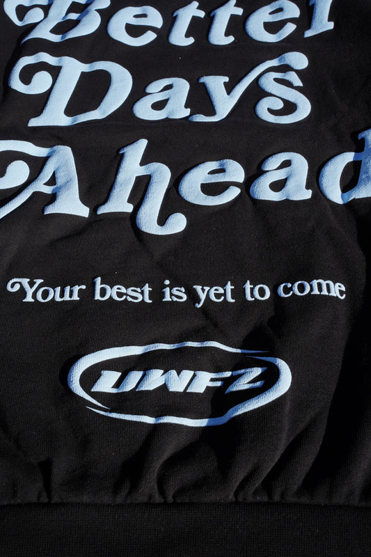 BETTER DAYS AHEAD PUFF PRINT HOODIE - Black with Light Blue Print