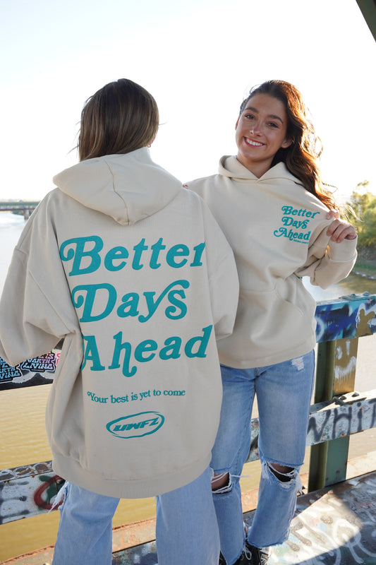 BETTER DAYS AHEAD PUFF PRINT HOODIE - White & Teal