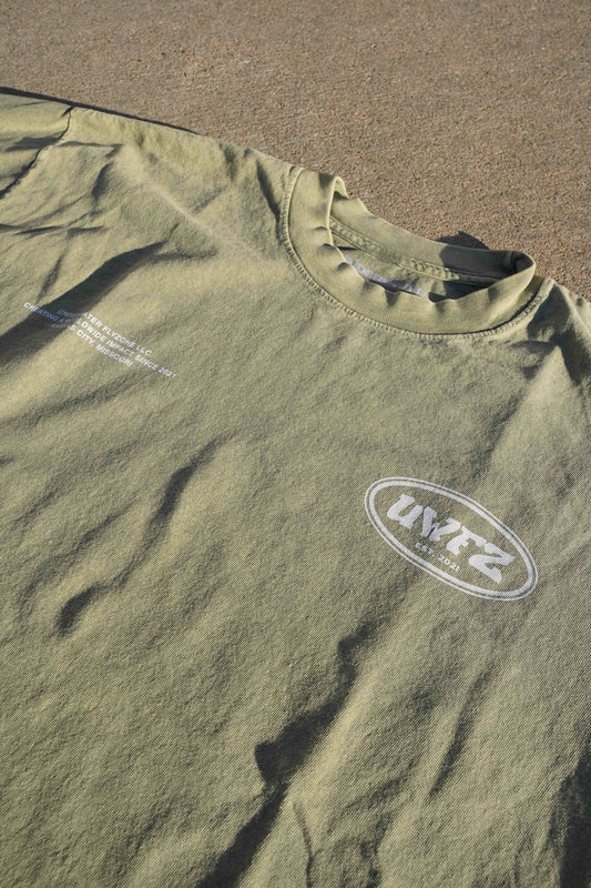 YOUR LIFE IS WORTH LIVING HEAVYWEIGHT TEE - Green Mineral Wash