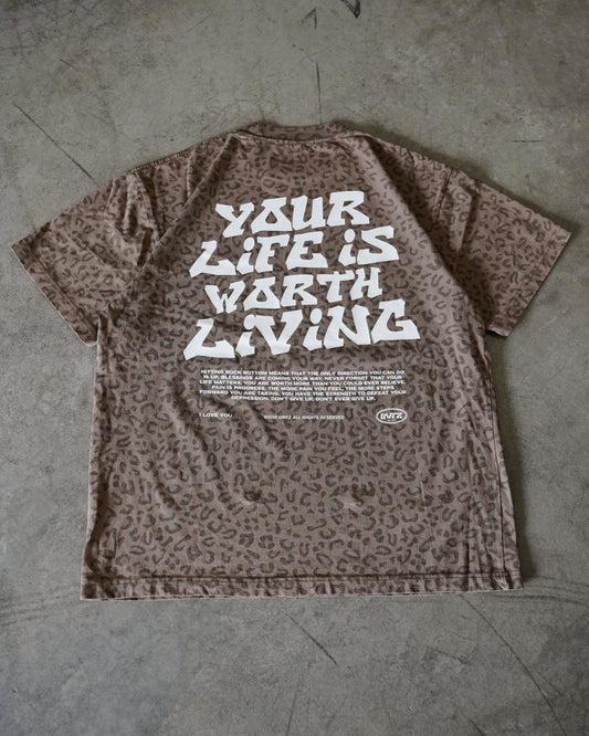 Brown Cheetah Print "Your Life is Worth Living" Heavy Weight T-Shirt