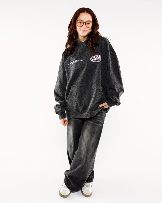 Vintage Black Cheetah + Pastel Pink Print "YOUR LIFE IS WORTH LIVING" Hoodie (100% Cotton)