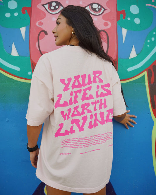 Pink on Pink "YOUR LIFE IS WORTH LIVING" Heavy Weight T-Shirt
