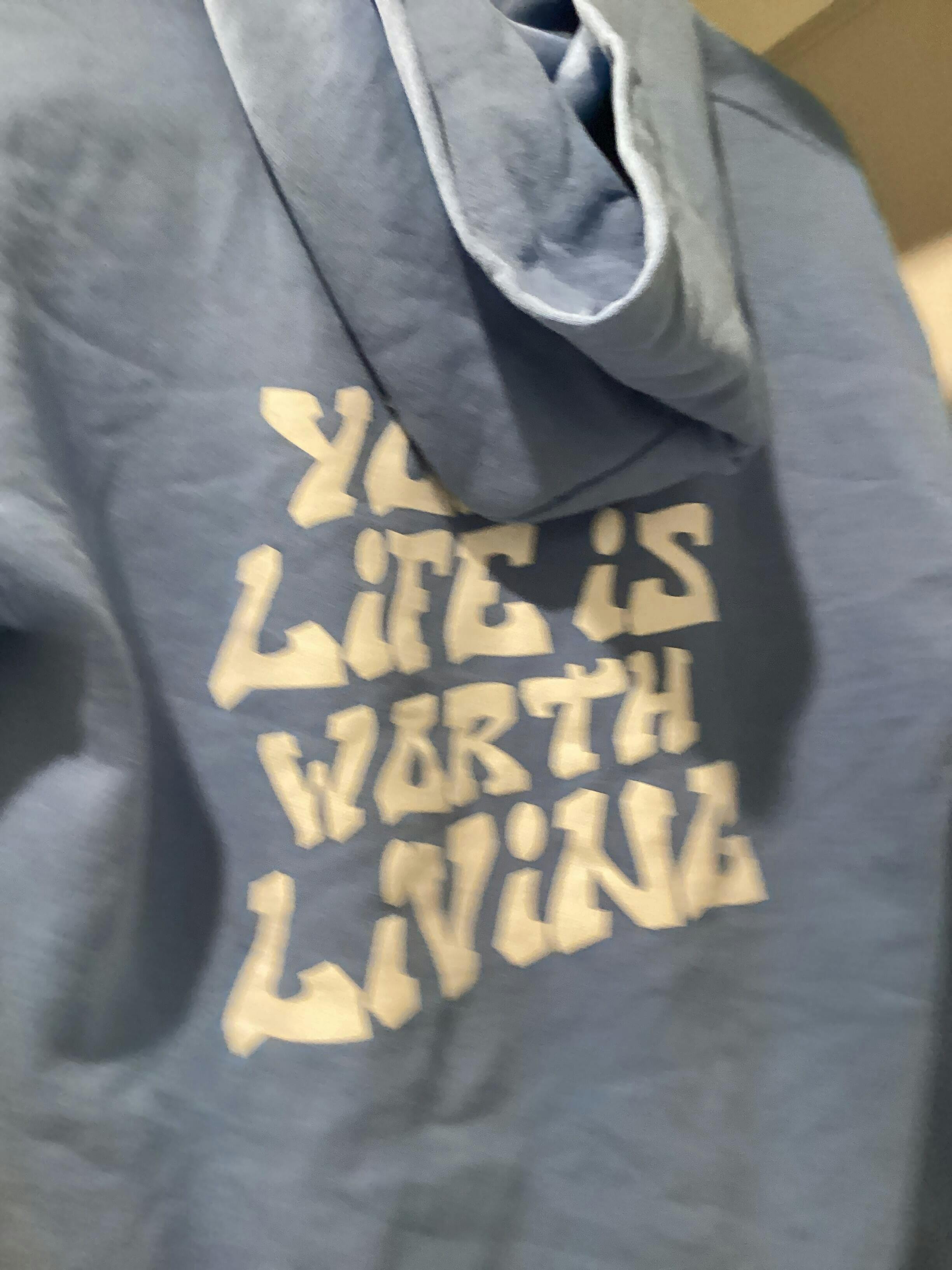 Blue + White "Your Life is Worth Living" YOUTH Hoodie