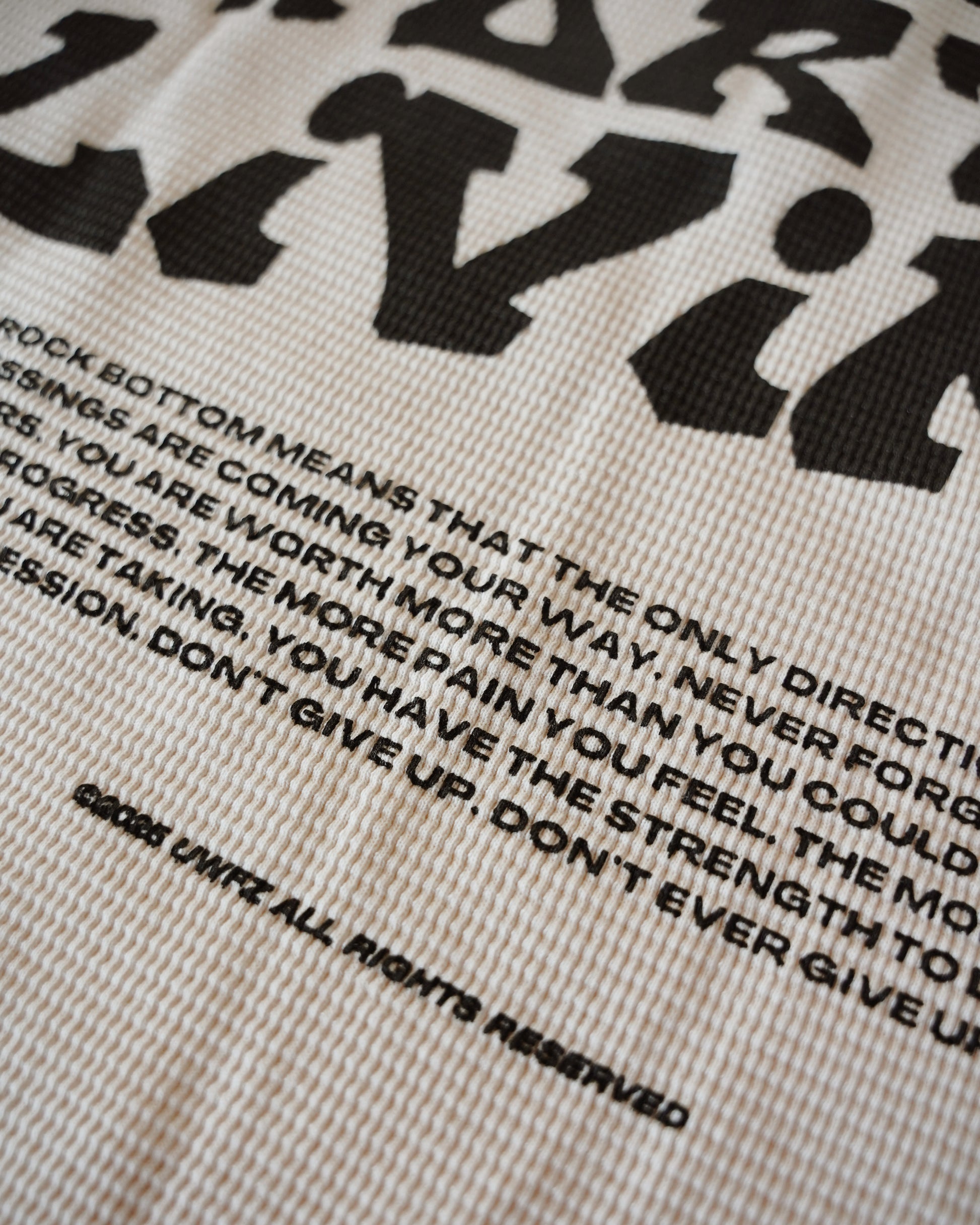 Cream + Black "YOUR LIFE IS WORTH LIVING" Thermal Long Sleeve (LIMITED)