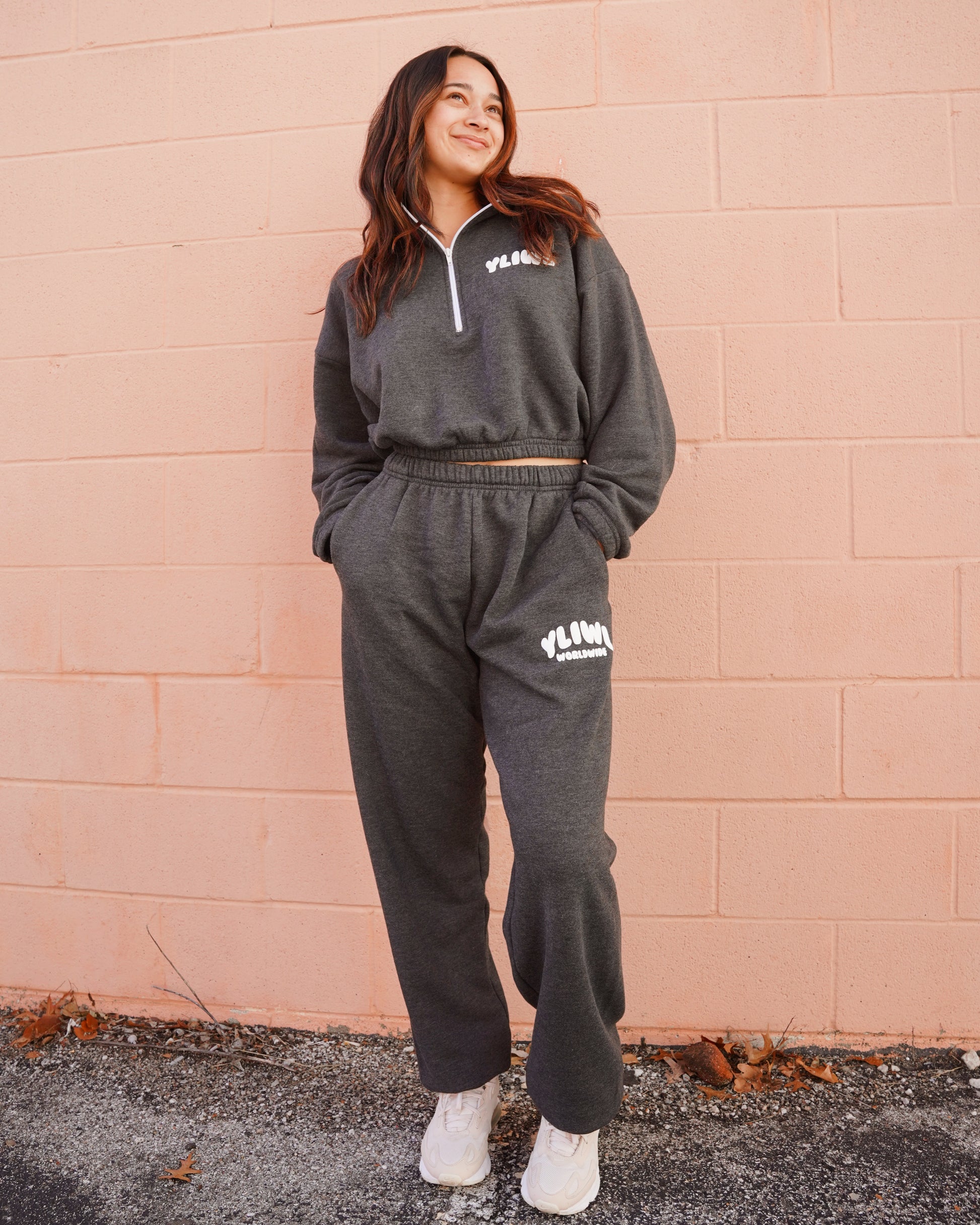 Dark Heather Grey + White PUFF PRINT "YLIWL" High Waist Sweatpant