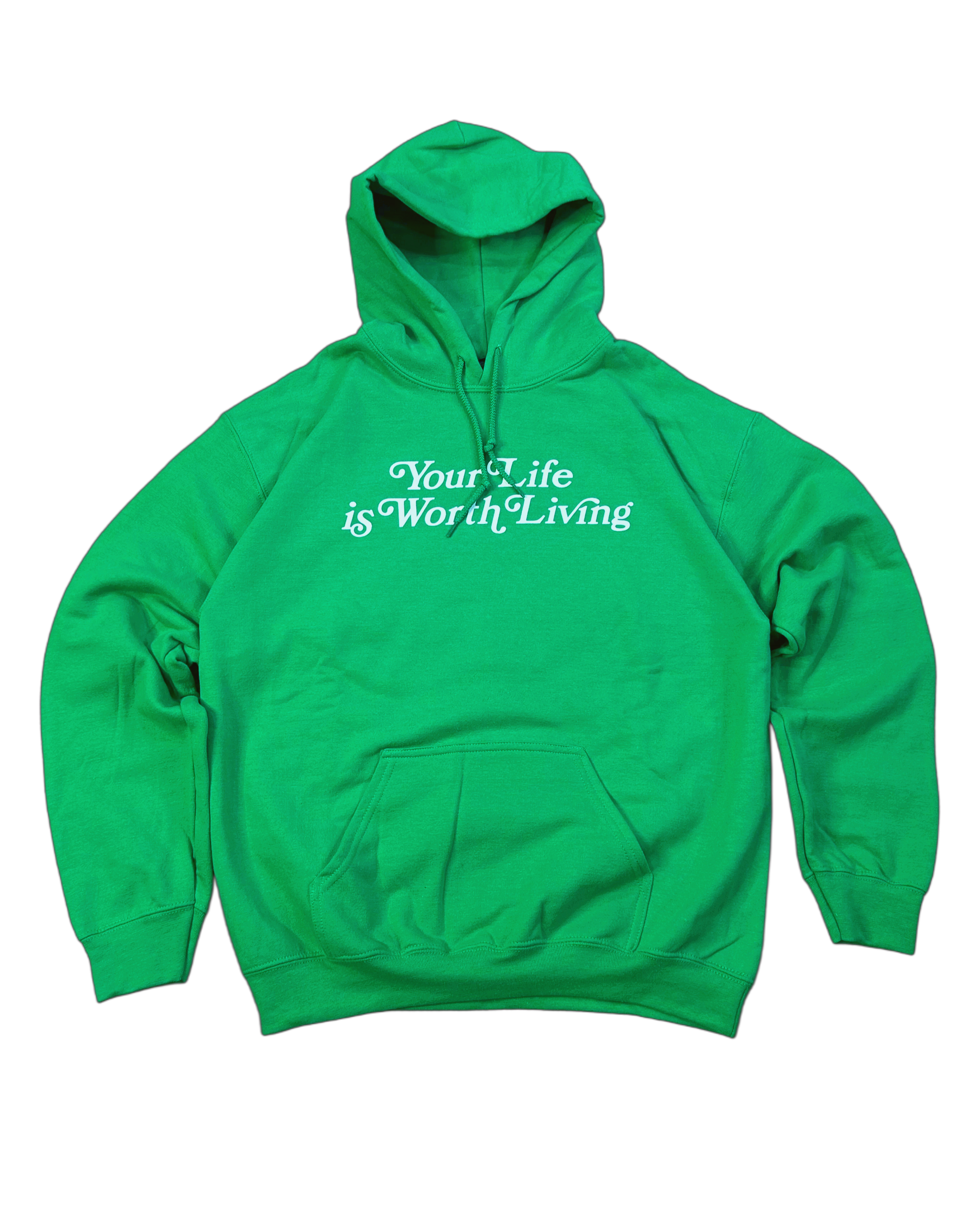 Green "YOUR LIFE IS WORTH LIVING" Lightweight Hoodie