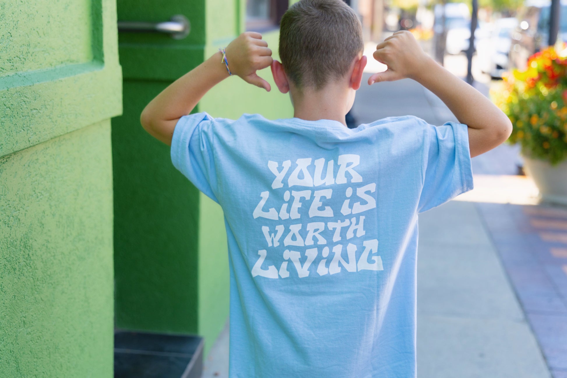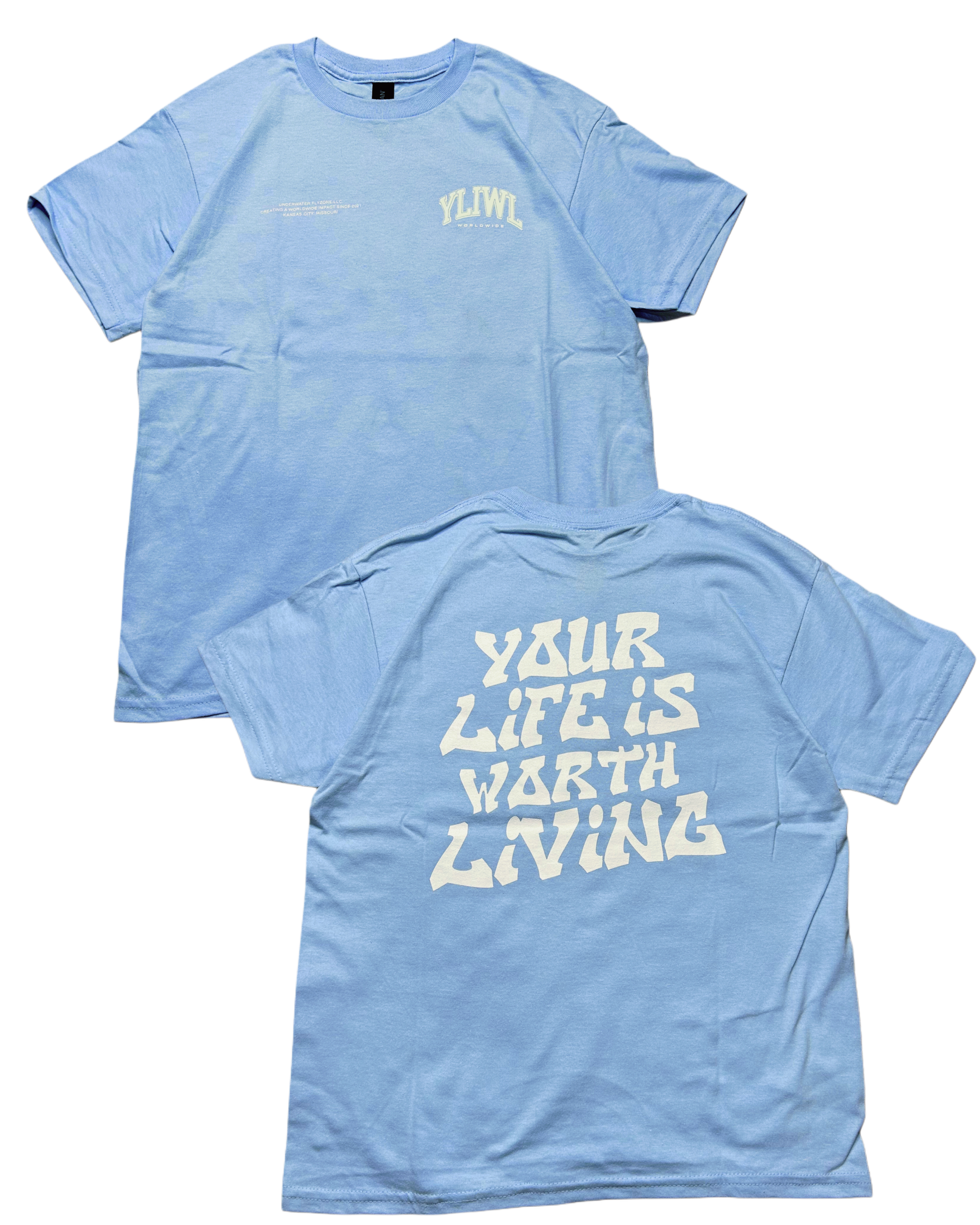 Blue + White "Your Life is Worth Living" YOUTH T-Shirt!